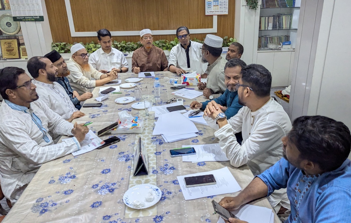 বাংলাদেশ জামায়াতে ইসলামীর সহকারী সেক্রেটারি জেনারেল ও ১১ দলীয় ঐক্যের সমন্বয়ক ড. এ এইচ এম হামিদুর রহমান আযাদের সভাপতিত্বে অনুষ্ঠিত সভায় উপস্থিত ছিলেন জাতীয় গণতান্ত্রিক পার্টির (জাগপা) সহ-সভাপতি ও দলীয় মুখপাত্র ইঞ্জিনিয়ার রাশেদ প্রধান, জাতীয় নাগরিক পার্টির (এনসিপি) মুখ্য সংগঠক (উত্তরাঞ্চল) সারজিস আলম, বাংলাদেশ জামায়াতে ইসলামীর কেন্দ্রীয় কর্মপরিষদ সদস্য ও ঢাকা মহানগরী দক্ষিণের নায়েবে আমীর আব্দুস সবুর ফকির, কেন্দ্রীয় কর্মপরিষদ সদস্য ও ঢাকা মহানগরী দক্ষিণের নায়েবে আমীর অ্যাডভোকেট ড. হেলাল উদ্দিন, কেন্দ্রীয় কর্মপরিষদ সদস্য ও ঢাকা মহানগরী দক্ষিণের সহকারী সেক্রেটারি মুহাম্মদ দেলাওয়ার হোসেন, কেন্দ্রীয় মজলিসে শুরা সদস্য ও ঢাকা মহানগরী উত্তরের সহকারী সেক্রেটারি নাজিম উদ্দিন মোল্লা, কেন্দ্রীয় মজলিসে শুরা সদস্য ও ঢাকা মহানগরী দক্ষিণের সহকারী সেক্রেটারি ড. আব্দুল মান্নান, বাংলাদেশ জামায়াতে ইসলামী ঢাকা মহানগরী দক্ষিণের কর্মপরিষদ সদস্য অধ্যাপক মোকাররম হোসাইন খান, মহানগরীর কর্মপরিষদ সদস্য ও অফিস সেক্রেটারি কামরুল আহসান হাসান, মহানগরীর সহকারী প্রচার সম্পাদক আবদুস সাত্তার সুমন, মহানগরীর সহকারী অফিস সেক্রেটারি মুজিবুর রহমানসহ বিভিন্ন পর্যায়ের দায়িত্বশীল নেতৃবৃন্দ।
