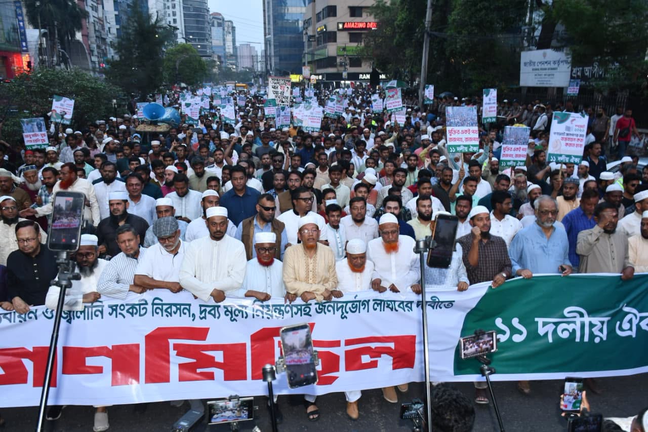 গণভোটের রায় বাস্তবায়ন ও জনদুর্ভোগ লাঘবের দাবিতে ১১ দলীয় ঐক্যের বিশাল গণমিছিল